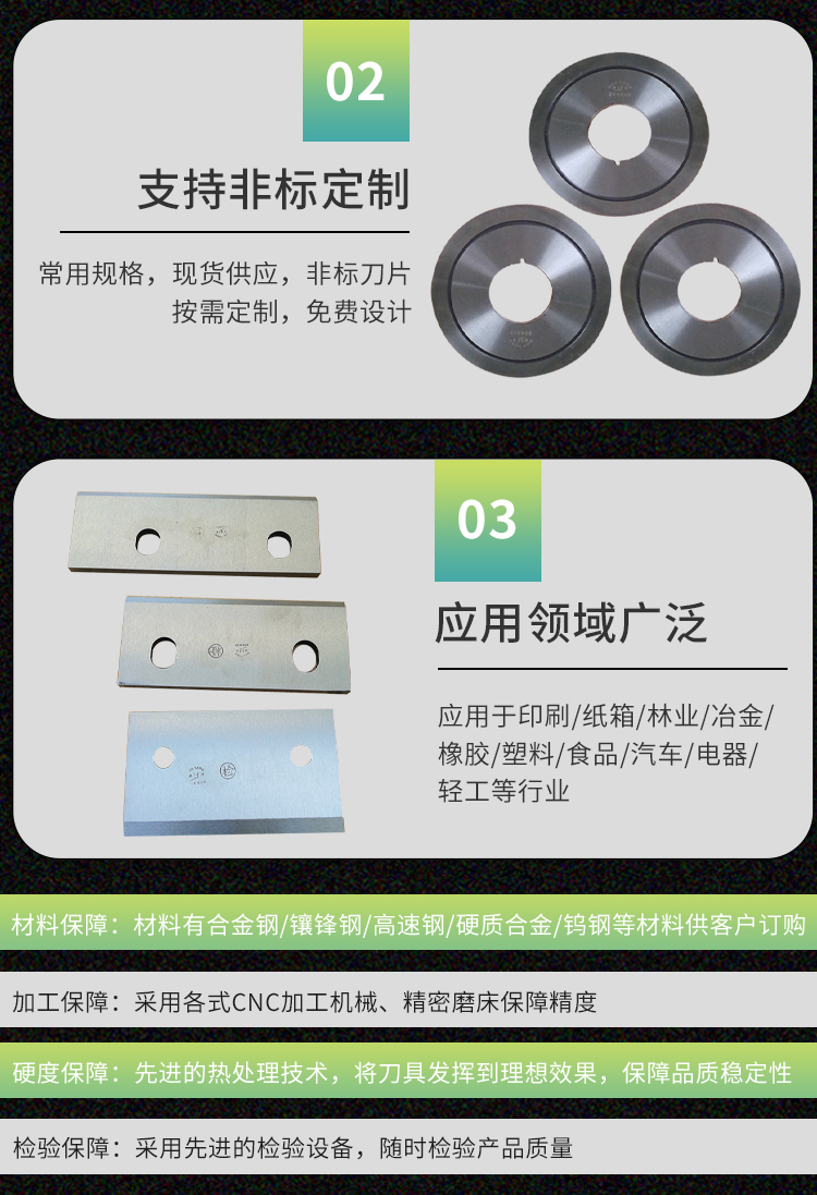 該系列分切機(jī)刀片分切材料時(shí),切割鋒利、迅速,并且切割面光潔、無毛邊。